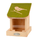 Deze functionele muurvoedertafel heeft een aantal praktische eigenschappen. (Her)vullen gaat eenvoudig door het dak op te tillen. De opstaande rand fungeert als zitstok, waardoor er een aparte voerbak ontstaat. Zo wordt de kans op ziektes verkleind.