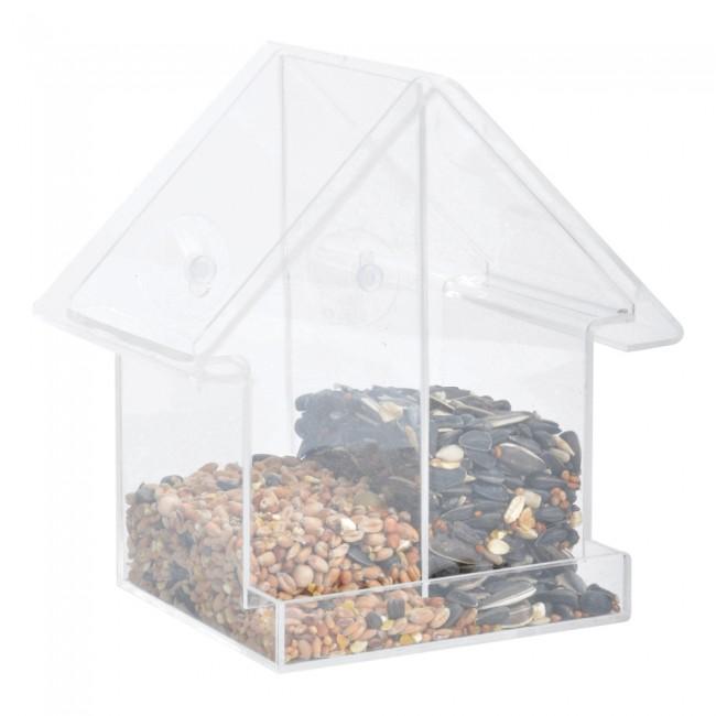 Door dit raamvoederhuis transparant combi van het merk Esschert Design kunt u gemakkelijk vanuit uw woonkamer genieten van vogels. Omdat dit voederhuisje aan het raam moet worden aangebracht is het vanaf nu ook mogelijk voor mensen met een balkon te genieten van koolmezen en vele andere tuinvogelsoorten. Dit voederhuisje heeft twee gedeelten, vandaar de naam 'combi'. Hierdoor kunt u verschillende soorten vogelvoer tegelijktijd in het voederhuisje doen!Dit raamvoederhuisje is gemaakt van massief UV-bestendig, transparant, kunststof en heeft kunststof zuignappen. Omdat het voederhuisje transparant is kunt u de vogels bekijken als deze aan het eten zijn.U kunt het raamvoederhuisje bevestigen door middel van de zeer sterke zuignappen die op het raamvoederhuisje aangebracht zijn.De zuignappen hechten zich aan het raam en zijn dusdanig ontworpen dat zij bestand zijn tegen weerstand en niet snel loslaten. Door de unieke vormgeving blijft het vogelvoer beschermd tegen regen en andere weersinvloeden. Gebruikersvoordelen: Gemakkelijk te bevestigen Twee voedergedeelten voor verschillende soorten vogelvoer Massief UV-bestendig transparant kunststof Genieten van verschillende tuinvogels Onderhoudsvriendelijk Gemakkelijk te vullen met vogelvoer