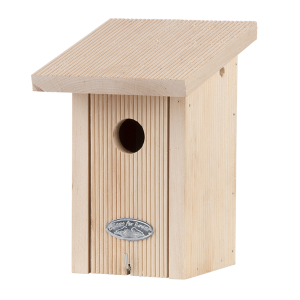 Dit vogelhuis is ontworpen voor het winterkoninkje. Het biedt een fijne plek om te nestelen en helpt daardoor de populatie in het gebied te behouden of zelfs terug te brengen. In de winter biedt het de vogels een plek om te schuilen tegen het slechte weer. De nestkast wordt geleverd in een full colour geschenkverpakking. 18mm dikke wanden die zorgen voor perfecte isolatie Schuin dak waardoor het water gemakkelijk wegloopt Overhangend dak beschermt tegen wind en regen Scharnierende voorzijde waardoor de nestkast gemakkelijk is schoon te maken Ventilatiegaten om oververhitting te voorkomen Vier drainagegaten in de bodem Geruwde binnenzijde en groeven in de voorzijde zodat de jonge vogels gemakkelijk uit de kast kunnen klimmen Zijwanden omsluiten de bodem ter voorkoming van wateroverlast L 15,4 x B 14,1 x H 21,2