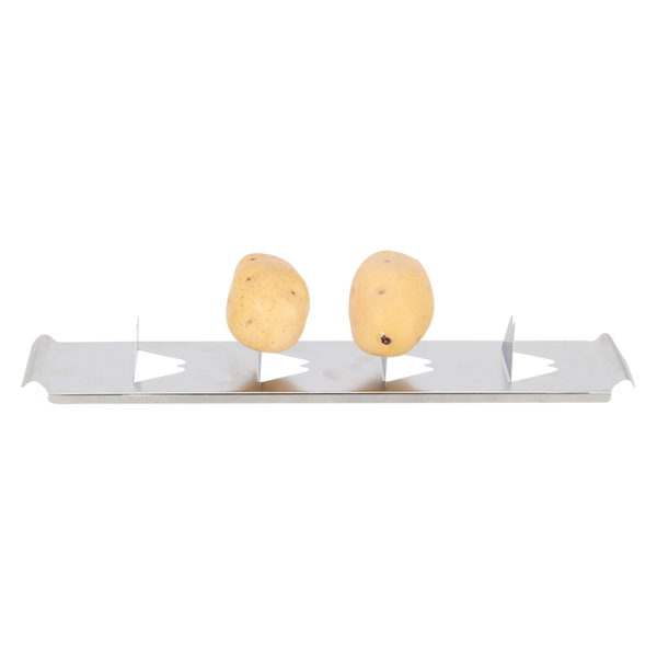 Deze BBQ aardappelhouder is een ware toevoeging voor het barbecue assortiment. Vlees en groenten grillen op de barbecue dat zijn we wel gewend, met deze aardappelhouder kan er ook met groots gemak aardappels worden gebakken op de barbecue. De schil wordt heerlijk knapperig en de binnenkant luchtig. Op de BBQ aardappelhouder is er plek voor vier grote aardappel. Je drukt de aardappelen gemakkelijk vast op de stalen pinnen.