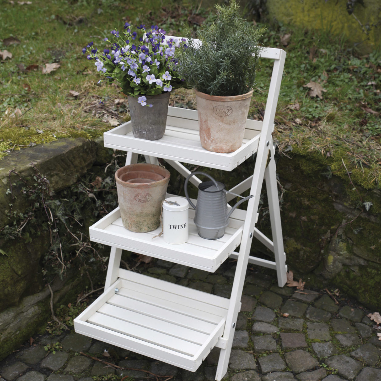 Robuuste simpele houten meubels en accessoires vormden jarenlang de entourage in de keuken en het leefgedeelte op boerderijen. Het kwalitatief hoogstaande hout zorgt voor een mooie afwerking en stabiliteit. Deze bloementrap voegt niet alleen veel sfeer toe, maar is ook zonder bloemen of planten een prachtig tuinaccessoire. De drie treden bieden voldoende ruimte om van bijvoorbeeld een kale muur een groene oase te scheppen. Een echte blikvanger voor iedere tuin of terras.