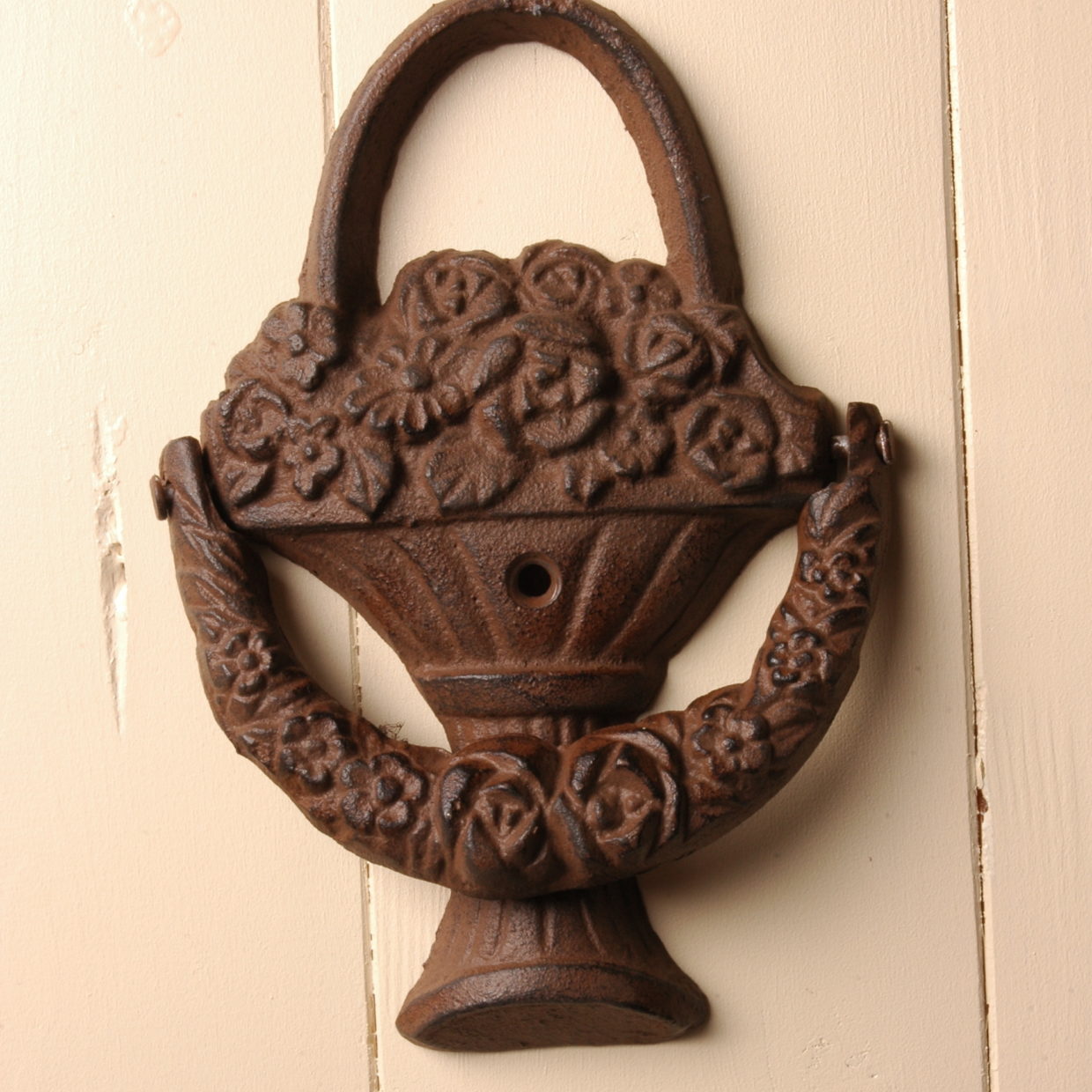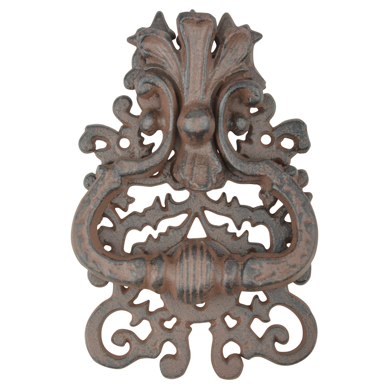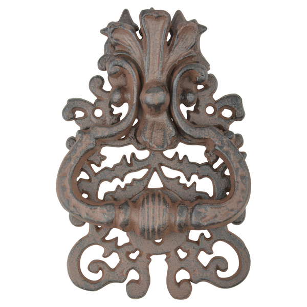 Voordat deurbellen hun intrede deden, had men een deurklopper op de deur zodat gasten zich konden aankondigen. Deze traditionele gietijzeren deurklopper heeft een sierlijke decoratieve achterkant en is met de hand gegoten volgens eeuwenoud vakmanschap en traditie.
