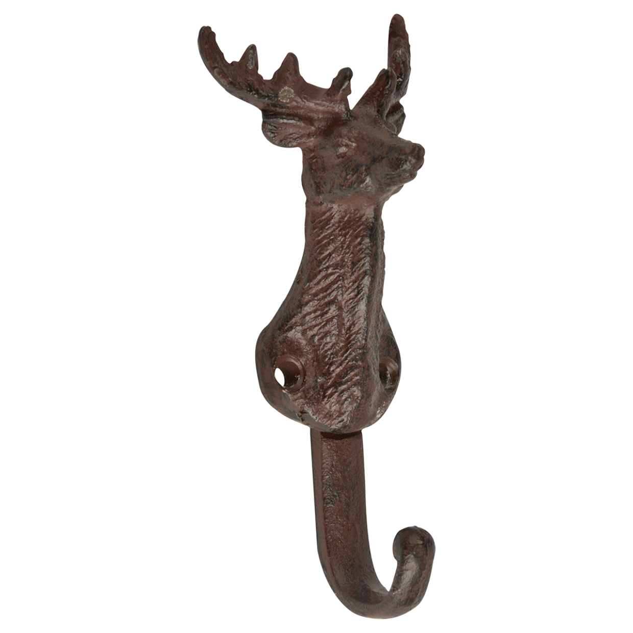 Deze rustieke gietijzeren wandhaak met hertenkop kan dankzij de twee ophanggaten eenvoudig gemonteerd worden. Aan de haak kan gereedschap worden opgehangen maar uiteraard ook allerlei andere spullen. Deze is per stuk met de hand gegoten volgens eeuwenoud vakmanschap en traditie.