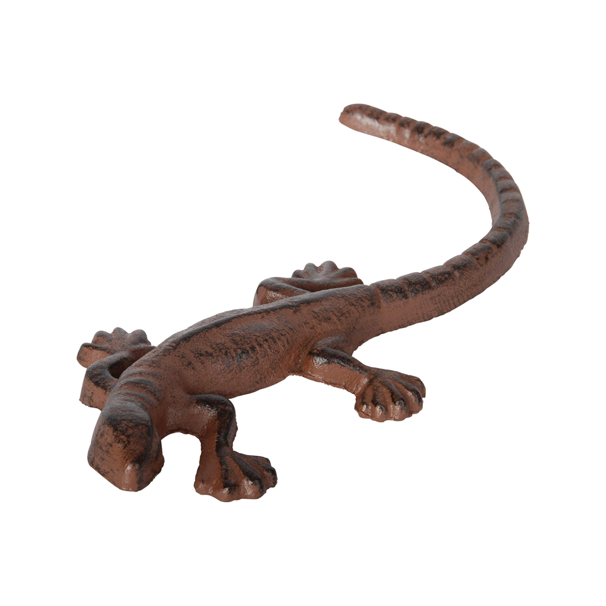 Deze decoratief gietijzeren hagedis is per stuk met de hand gegoten volgens eeuwenoud vakmanschap en traditie.