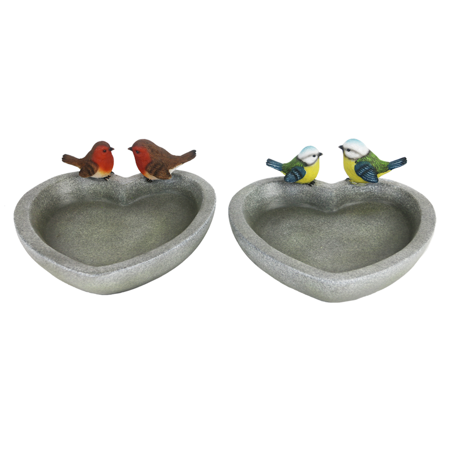 Deze hartvormige vogelbaden zijn gemaakt van polyresin en kunnen zowel met water als met voer worden gevuld. Zij geven de vogels een heerlijke voeder- en badderplek.
