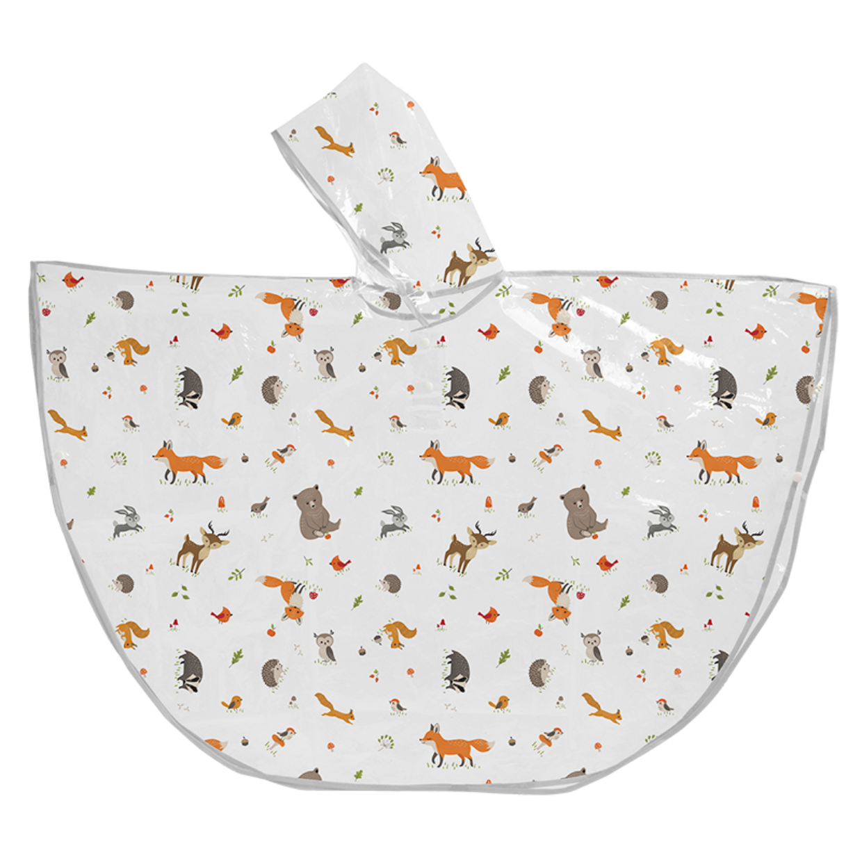 Met deze kinderponcho met bosdieren wordt buiten spelen in de regen een feestje, de poncho beschermt de kleding tegen de regen. De poncho is ideaal voor kinderen, omdat je de poncho gemakkelijk aantrekt over de kleding heen. De band is voorzien van reflecterend materiaal, hierdoor zijn kinderen ook goed zichtbaar in het donker.