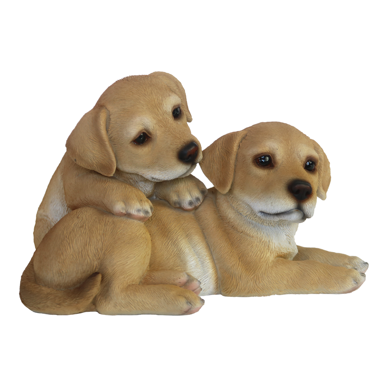 Deze pups zijn bijna niet van echt te onderscheiden en zijn gemaakt van polyresin. Voor binnen en buiten, vorstbestendig en beschermd tegen UV straling.