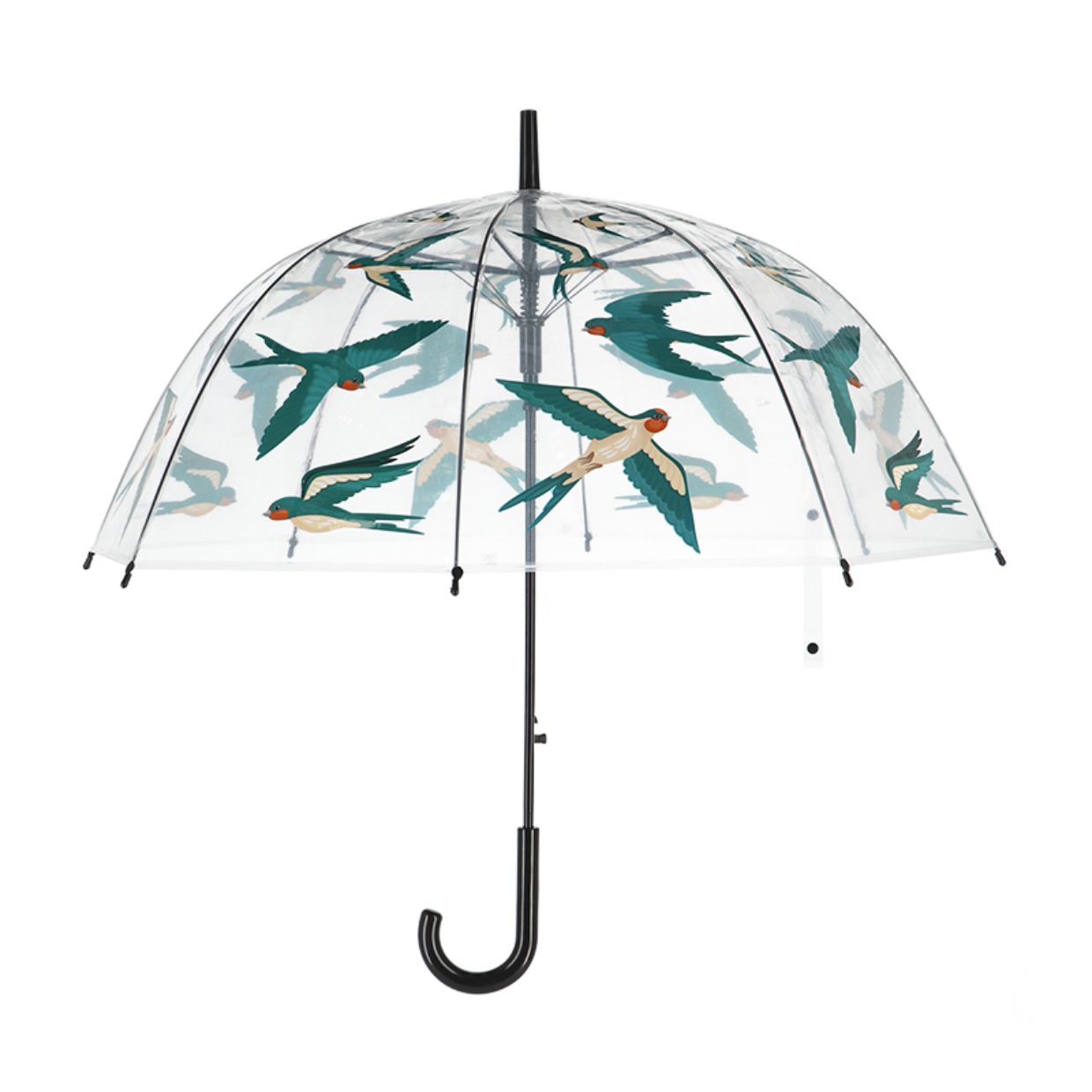 Deze transparante paraplu voorzien van een vrolijke zwaluwen print is voorzien van een fijn handvat. De paraplu opent automatisch. Dankzij deze paraplu wordt wandelen door de regen een feestje en door de transparante kap kan je goed zien wat er voor je gebeurt.
