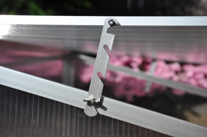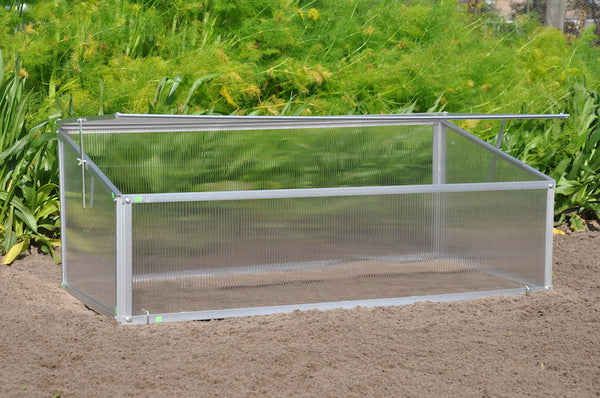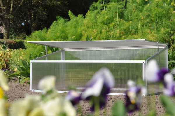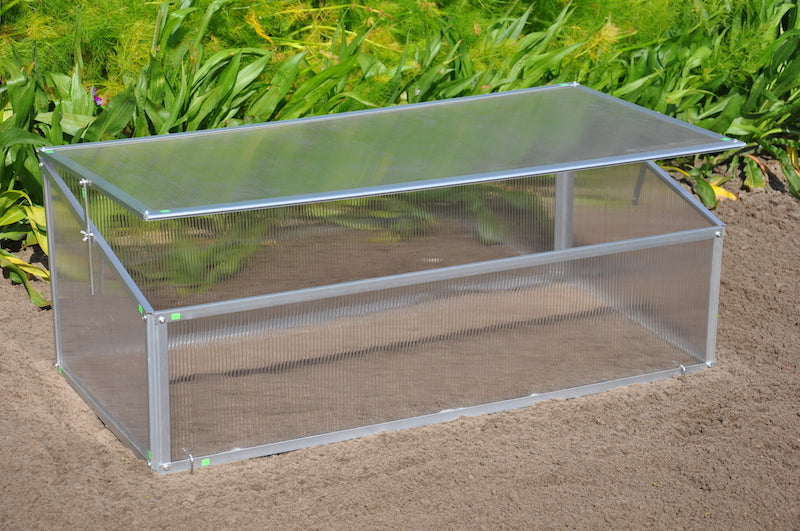 Kennismaken met het plezier in kweken? Samen met de kinderen? Dan is de Viola broeikas een uitstekende keuze. Een kleine investering, direct kweekplezier. Al vroeg in het voorjaar. Deze broeikas bestaat uit een onderhoudsvrij aluminium frame en een kunststof afdichting. De afdichting van polycarbonaat heeft een dikte van 4 mm en is dubbelwandig. Polycarbonaat heeft verschillende voordelen: het is niet gevoelig voor breuk, geheel veilig in gebruik en heeft het bovendien een isolerende werking. De Viola is voorzien van een enkele ‘klep’ aan de bovenzijde voor het beluchten van de planten. De ‘klep’ kan middels 2 uitzetters in 4 standen windvast worden geborgd. Met 4 grondpennen van 25 cm wordt de Viola broeikas met de ondergrond verbonden. Lengte: 109 cm Breedte: 56 cm Goothoogte: 28,5 cm Nokhoogte: 41 cm Oppervlakte: 0,6 m²