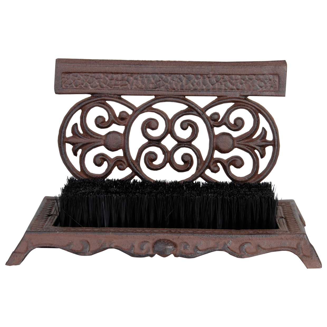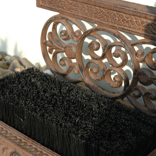 Deze decoratieve gietijzeren voetenveger is ideaal voor het schoonmaken van het schoeisel. Dankzij de kokos borstels wordt hardnekkig en grof vuil van het schoeisel verwijderd. Daarnaast is de bovenkant voorzien van een schraper. Het gietijzeren gedeelte is met de hand gegoten volgens eeuwenoud vakmanschap en traditie.