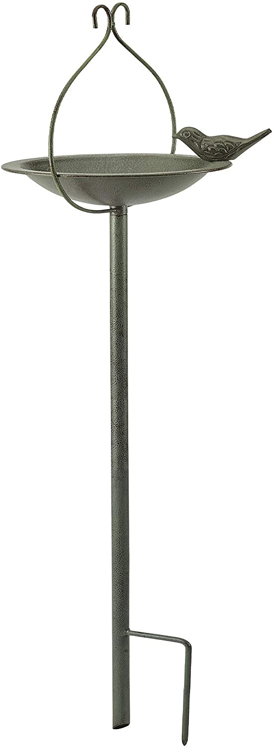 Prachtige voederschaal op paal. Sterk metalen feeder met decoratief vogeltje op de rand Hoogte 88cm