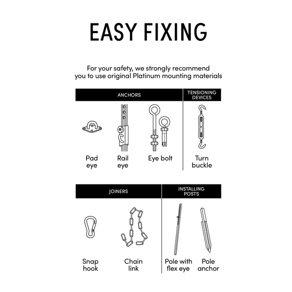 - Bevestigingsringen van hoogste kwaliteit RVS 316 AISI.