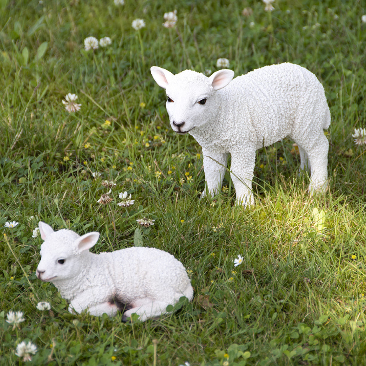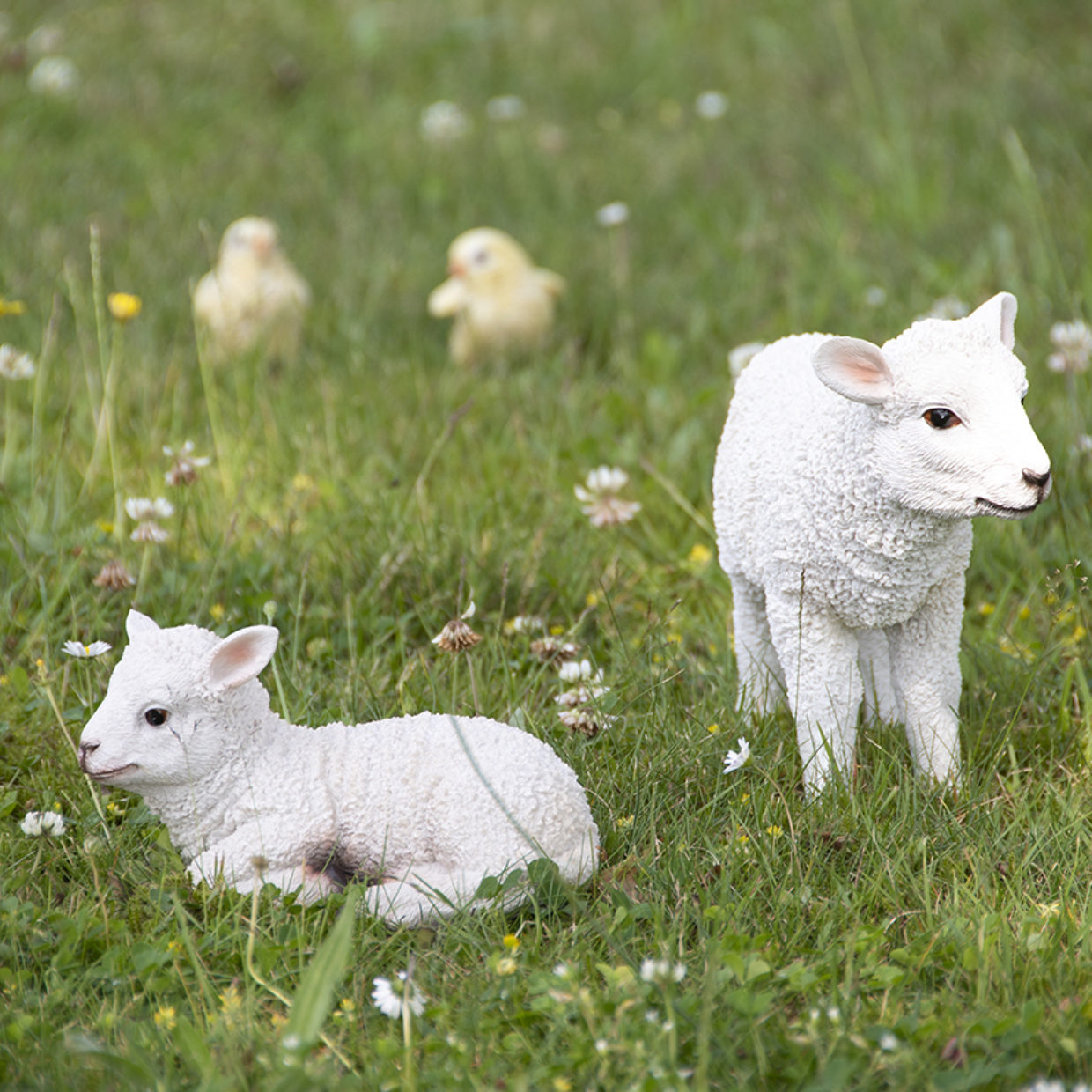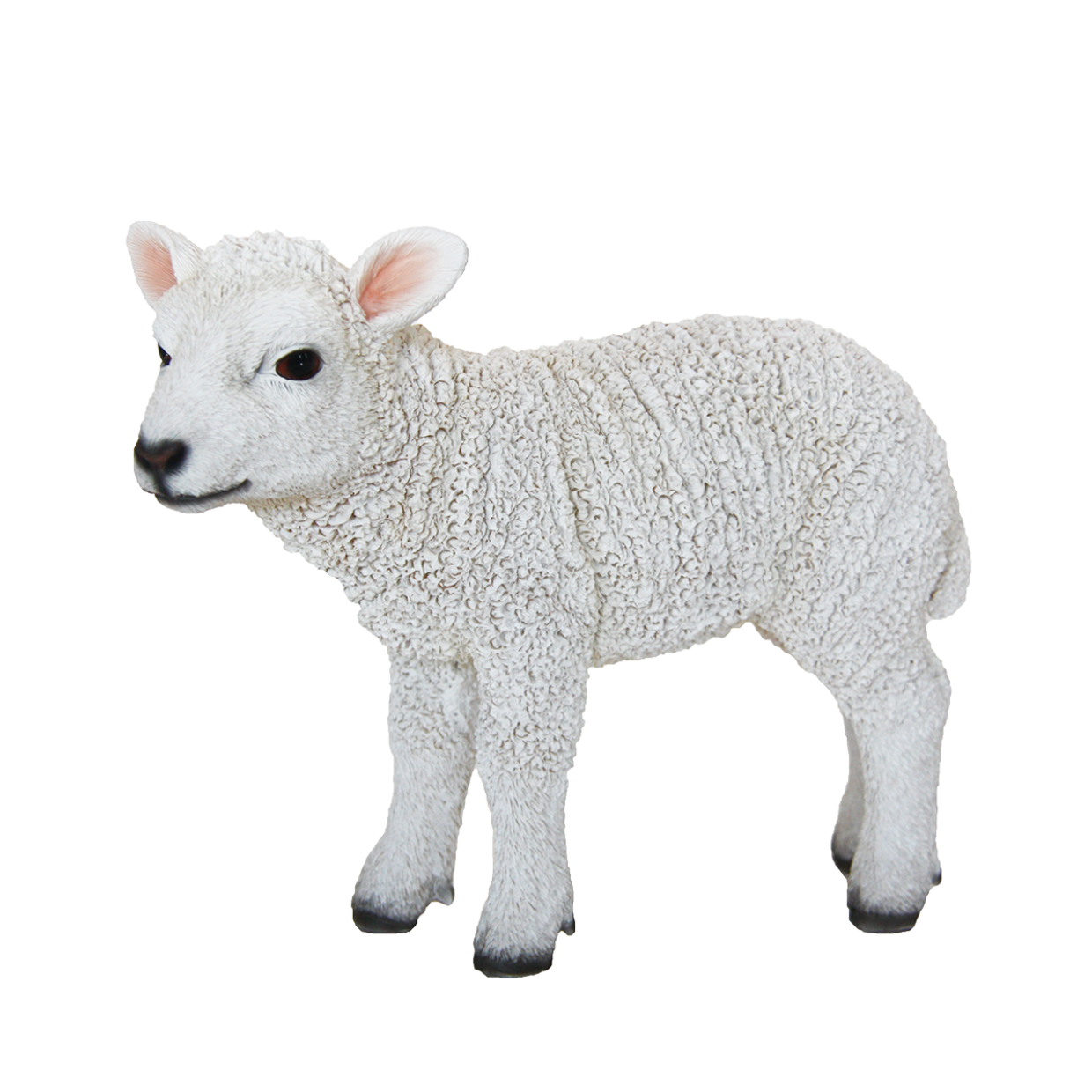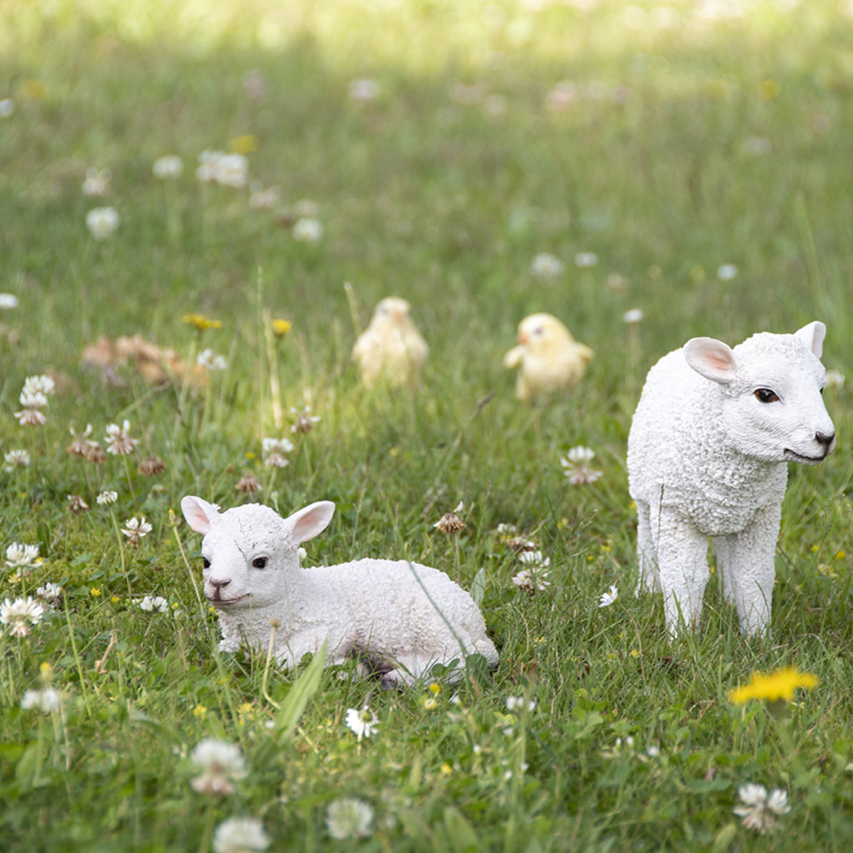 Dit lam is gemaakt van polyresin en bijna niet van echt te onderscheiden. Voor binnen en buiten, vorstbestendig en beschermd tegen UV straling.